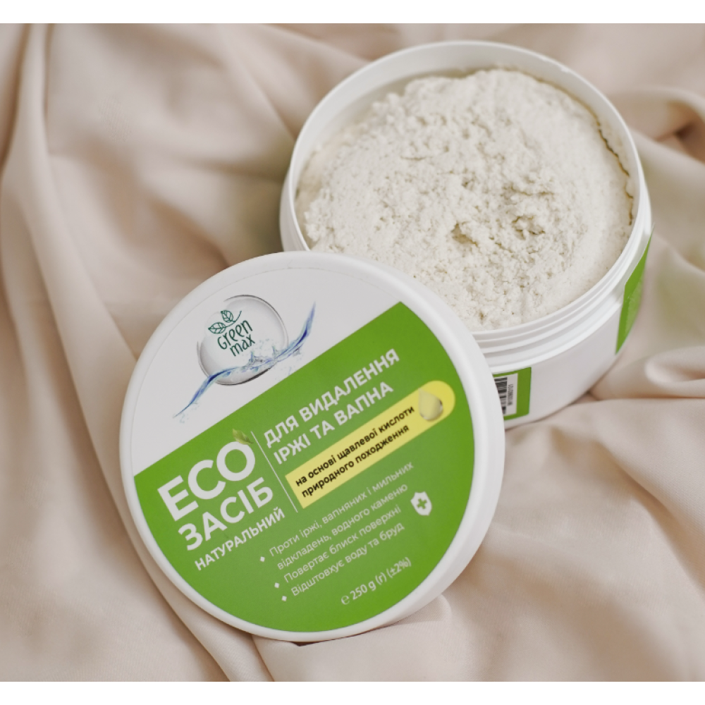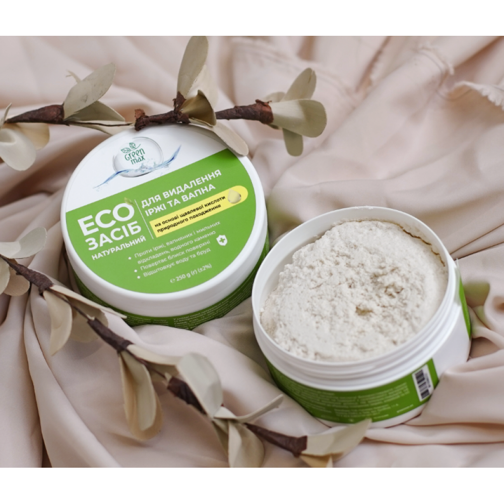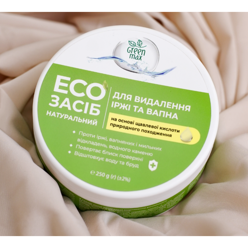 ЭКО средство для удаления ржавчины и извести ТМ GREEN MAX 250г в виде пасты - это натуральное средство для очистки загрязненных поверхностей.