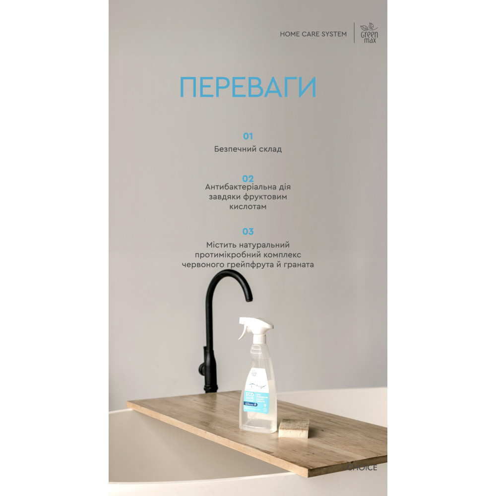Экологичное средство для эффективной очистки ванны, раковины, плитки, душевых кабин и смесителей. Удаляет мыльный налёт, известковый камень и загрязнения, не повреждая поверхности и без вреда для здоровья.