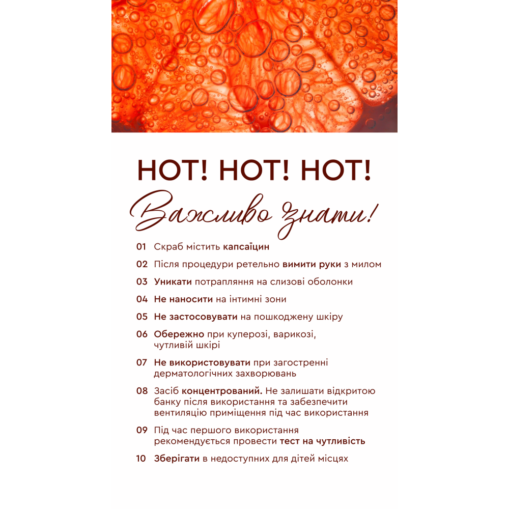 Антицелюлітний скраб з розігрівальним ефектом містить капсаїцин.