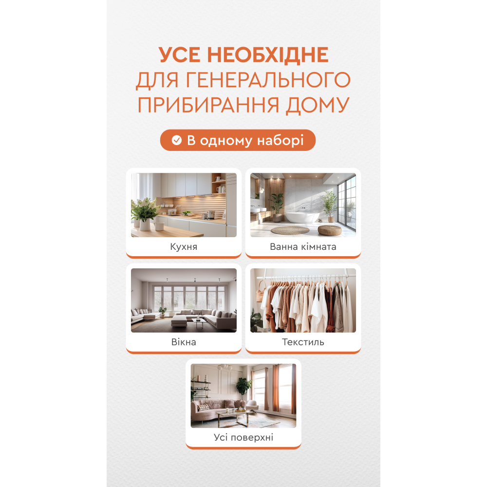 Мы собрали в этом наборе все необходимое для безопасной генеральной уборки дома – от стирки до мытья окон. Благодаря эффективным экосредствам Green Max вы сможете быстро, легко и абсолютно безопасно навести идеальную чистоту перед светлым праздником Пасхи.